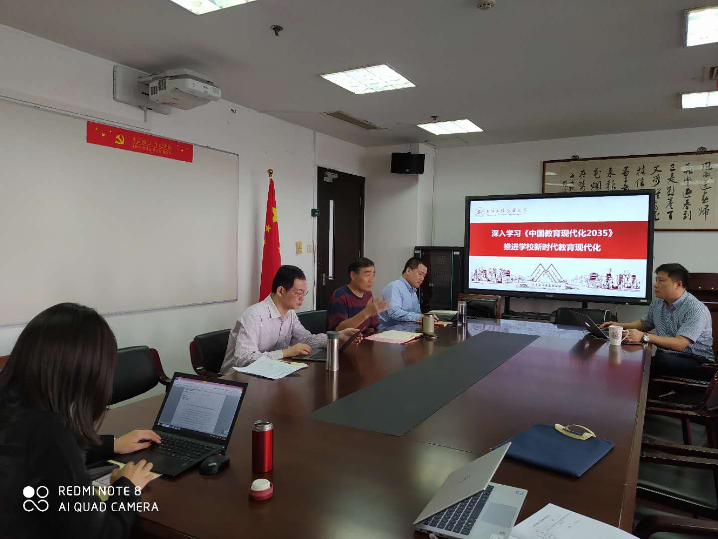 会议由许传宏书记主持,严运楼副经理首先对《中国教育现代化2035》做了解读,其他与会领导围绕文件并结合学院的“十四五”规划和实际教学工作进行了深入探讨。