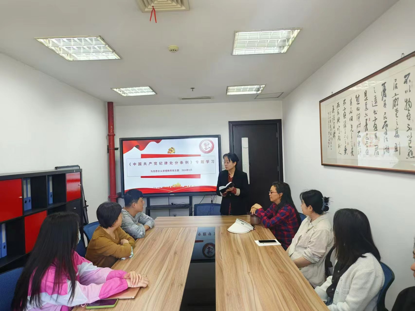 为学深悟透习近平总书记关于党的纪律建设的重要论述,近日,马原教师党支部全体党员教师在行政楼1116会议室集体学习《中国共产党纪律处分条例》(后文简称《条例》),学习活动由支部书记杨娟教授主持。