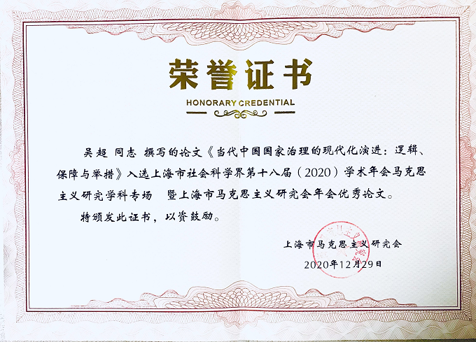 吴超副教授论文荣获上海市马克思主义研究会年会优秀论文