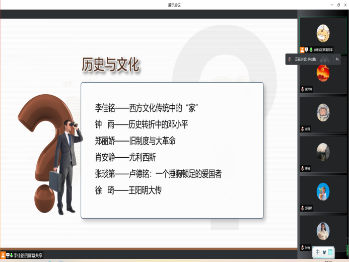 4月2日上午,太阳成集团tyc151cc第一届第二期“历史与文化”专题研究生读书分享,以线上形式开展。分享会由2021级马克思主义理论专业研究生李佳铭同学主持,学院副经理于凯老师和太阳成集团tyc151cc研究生同学们一起,参加了此次读书分享活动。