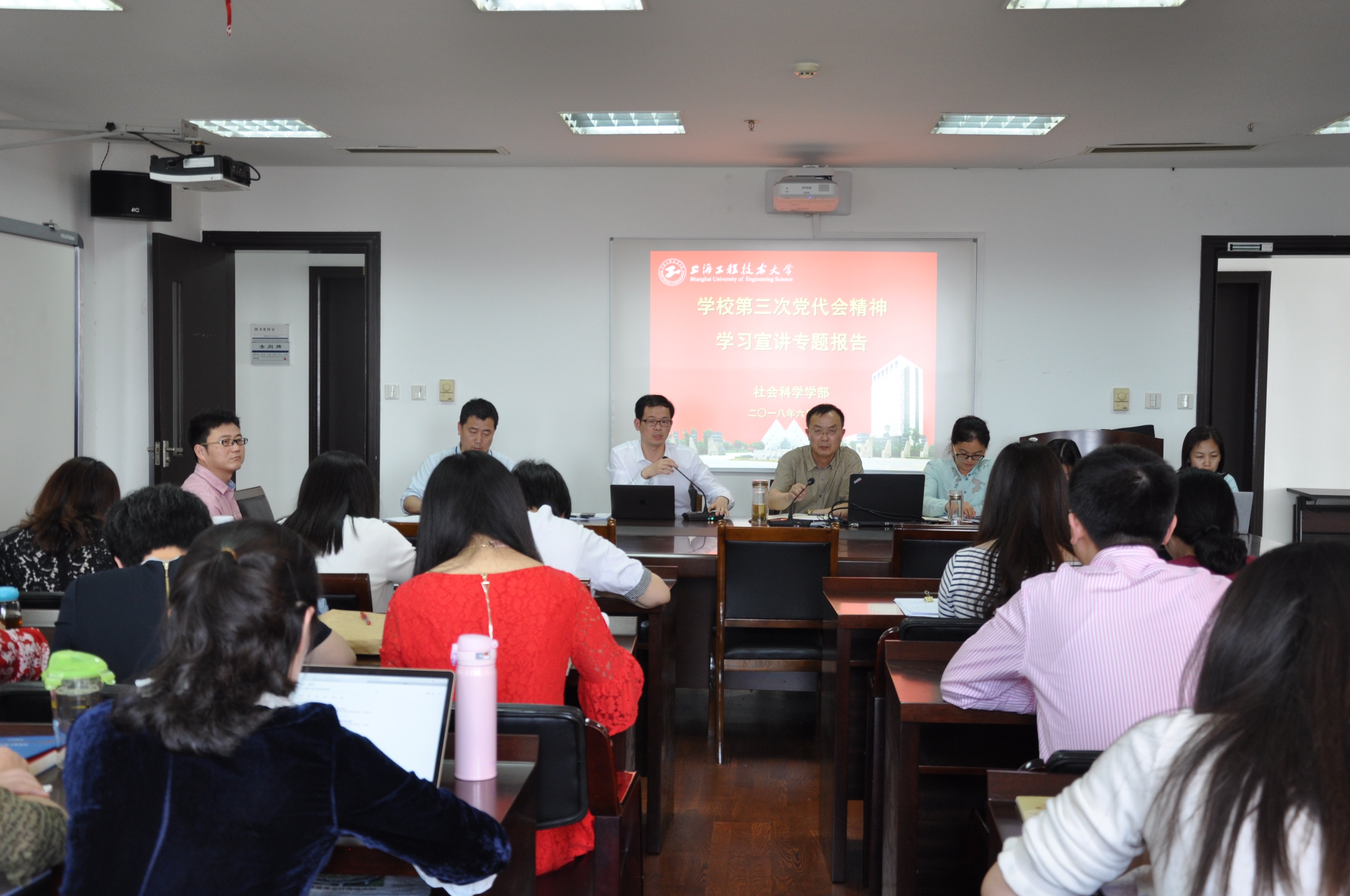 为深入学习贯彻落实学校第三次党代会报告精神,6月1日下午,党委讲师团讲师刘志欣教授在行政楼812为社会科学学部全体教师作了学校第三次党代会报告精神专题宣讲。学院全体领导和教师参加了会议。