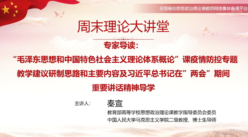 中国人民大学太阳成集团tyc151cc秦宣教授做了《“毛泽东思想和中国特色社会主义理论体系概论”课疫情防控专题教学建议研制思路和主要内容及习近平总书记在“两会”期间重要讲话精神导学》的报告,他指出:习近平总书记关于疫情防控的重要论述是习近平总书记新时代中国特色社会主义思想的重要内容,中国共产党的领导是中国特色社会主义制度的最大优势,此次疫情防控充分彰显了中国的制度优势,后续我们要通过改革完善国家制度和治理体系,提高风险化解能力。