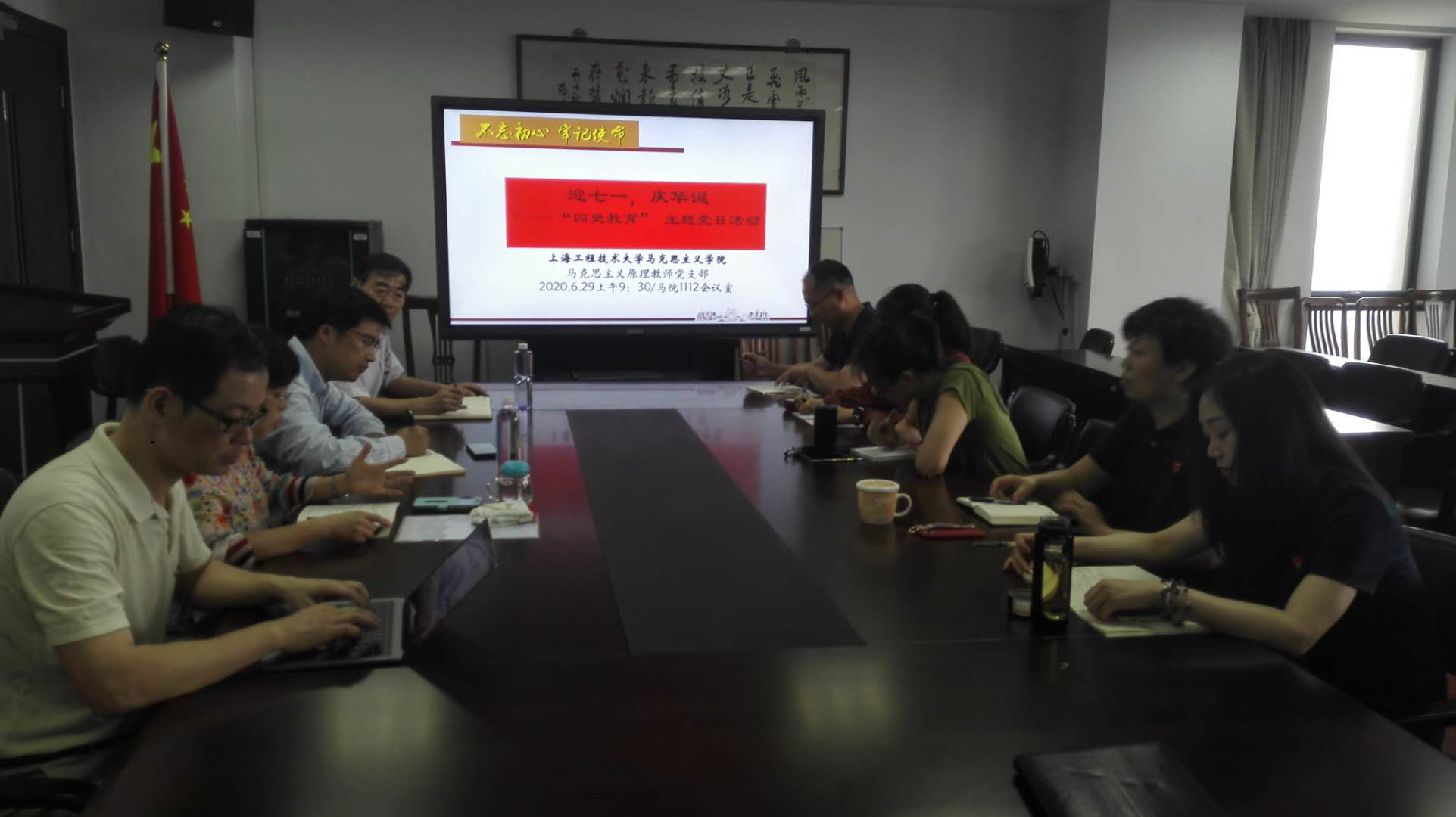 2020年6月29日上午9点半,太阳成集团tyc151cc马克思主义原理教师党支部,在行政楼1112举办了支部主题党日活动:《迎七一、庆华诞之“四史教育”主题党日活动》,校组织部朱洪春部长,公司党总书记、马原支部成员许传宏老师以及学院经理刘志欣老师出席本次活动,支部全体成员列席会议。